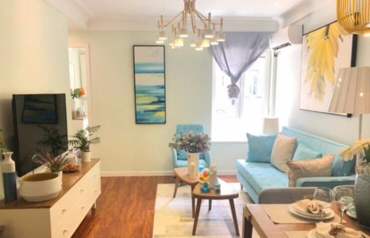 客厅的面积并不大,墙面虽然刷了乳胶漆,不过看着依然有点小单调,所以挂了一些装饰画做软装点缀。电视墙也没有额外的装饰,摆放上电脑桌和电视机,两边加一点小盆栽,整体效果看起来就显得时尚又好看。
