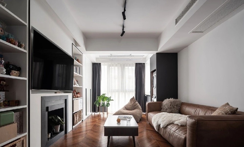 客厅保留墙面的白色,用自身最为适当的包容度将舒适宜人的氛围拿捏到位,可与年月经久相伴。被纳入起居空间的阳台,延展了整个视线。