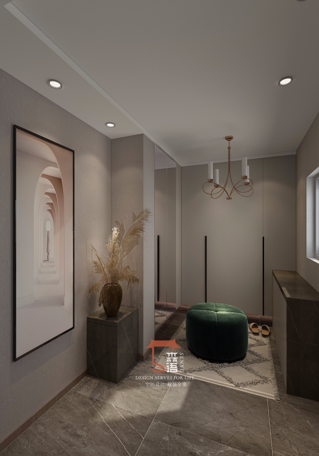这是一层,面积不大,所以作为入户的玄关和衣帽区,运用绿色点缀,给整个一层提升了极大地生命力
