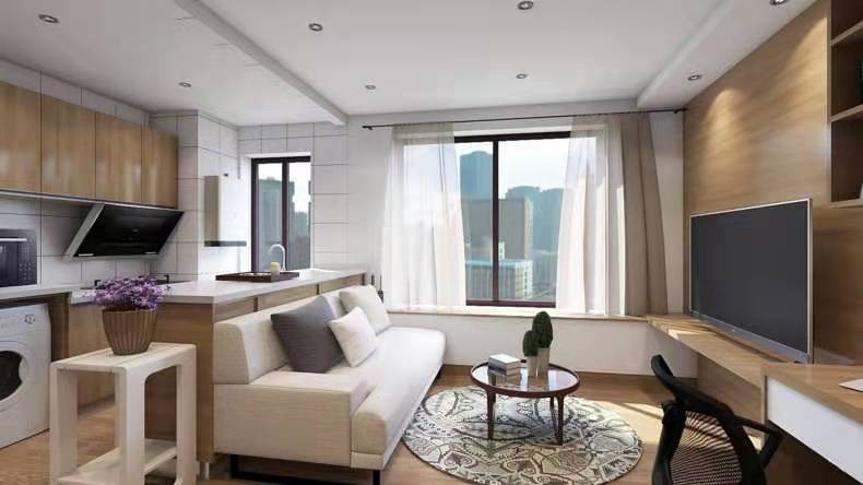 28㎡的空间一览无余,但是也正好看到整体设计的自然与气质,虽然小,但是并不闭塞拥挤,整体采用原木风塑造,清爽简洁,色彩浅淡,简约实用,窗户也让空间更加明亮,加上各种筒灯的照射,让小户型更加通透舒适