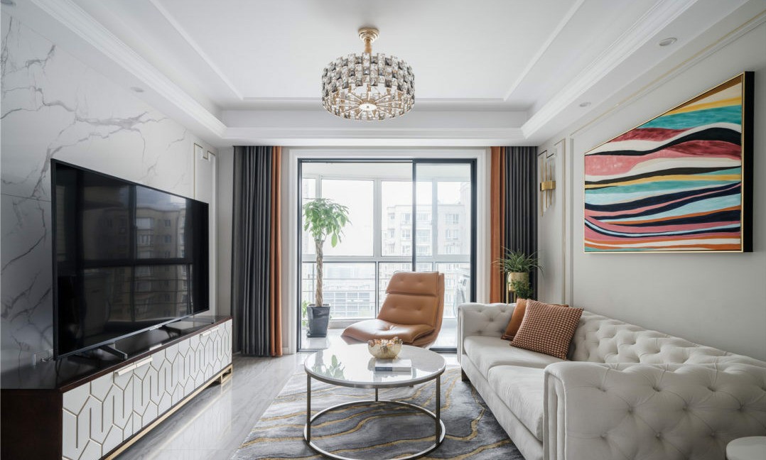 轻奢风强调装饰感,绝不会出现单调的大白墙,哪怕是浅色的墙面也会有纹理的背景或者一副艺术墙画。所以不留大白墙是轻奢精致的一个体现。
