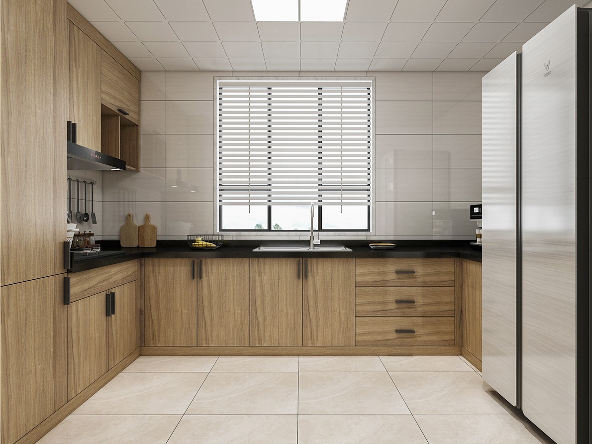 清新脱俗,木作柜身辅以半封闭式的延展,犹抱琵琶半遮面,渐露秩序优美的质感,常用不易脏。
