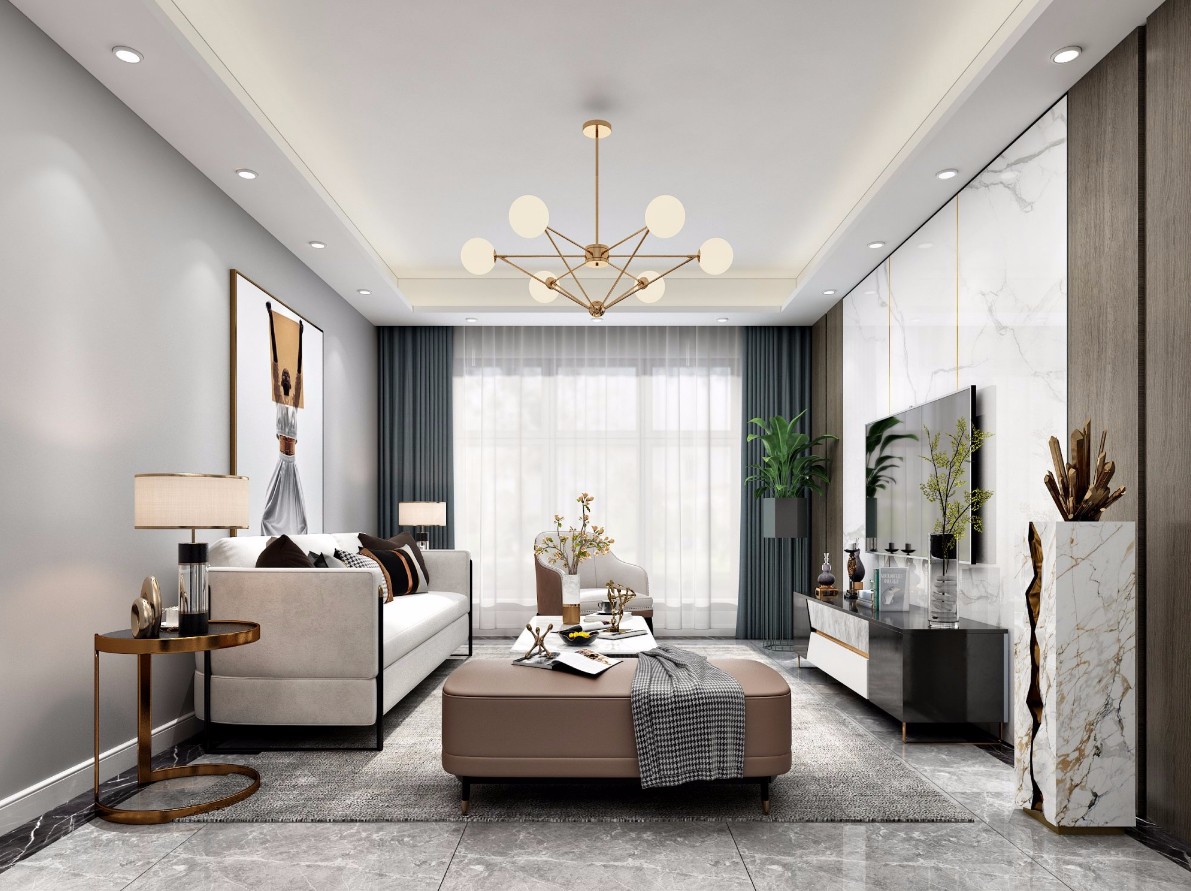 本案采用现代风格,现代风格外形简洁、功能强,强调室内空间形态和物件的单一性、抽象性。现代简约风格,顾名思义,就是让所有的细节看上去都是非常简洁的。装修中极简便是让空间看上去非常简洁,大气。