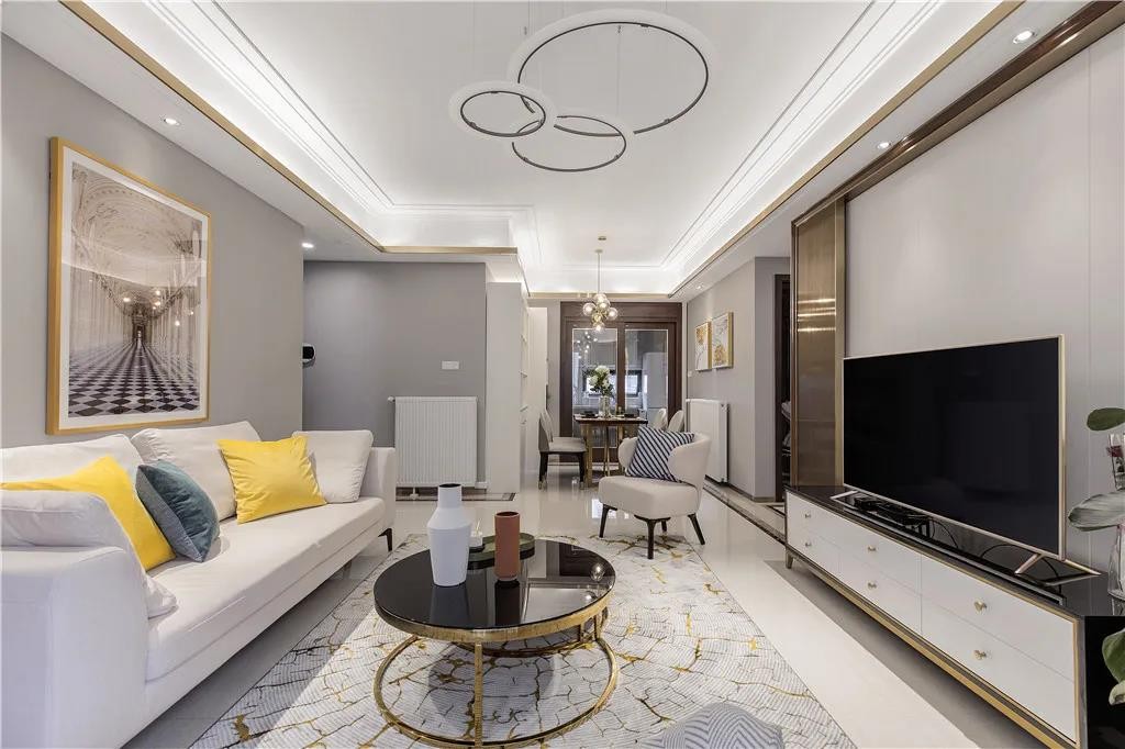 套内面积122㎡ 风格:现代轻奢 整体空间以现代舒适的格调基础,呈现出一种现代舒适而又华丽优雅的从容气质。