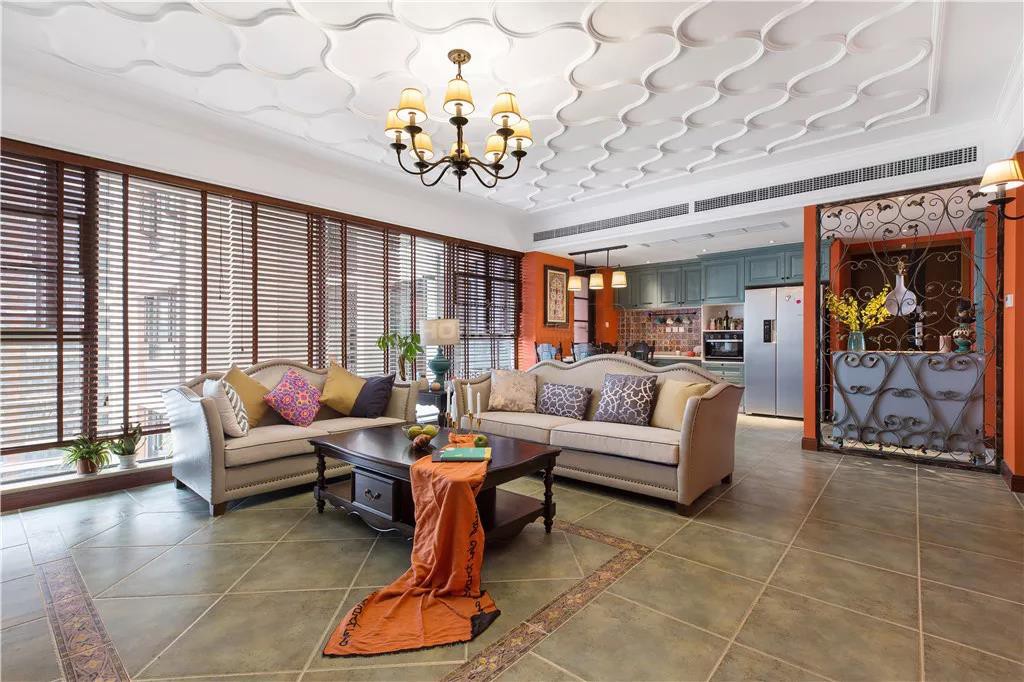 ***的吊顶线,独特的花纹,简洁的设计,层次更加分明,空间感更加深邃,整面墙的落地窗,配合着大面积的木质百叶,东南亚风尽显得淋漓尽致。