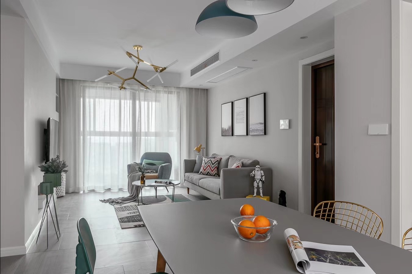 客厅与功能阳台遮而不挡 ,拓展了空间利用和视野的开阔。