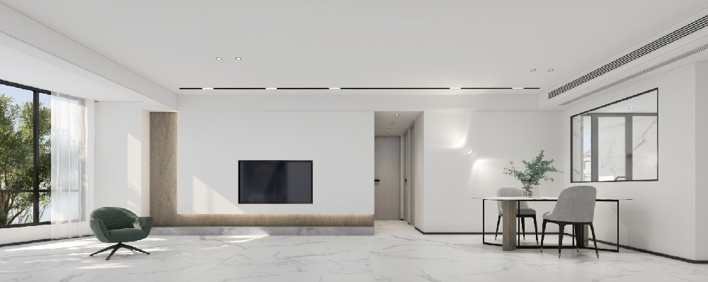 极简主义并不代表着极度简单,极简主义也不代表简陋,极简主义摈弃了复杂的装饰,让家不施粉黛、清新自然,减少不必要的琐碎,回归最纯粹的简约,让整个新家看起来很纯粹,和谐安静。 对于极简不喜欢的人来看,极简风格是真的太过于简单,没有任何装饰,但是业主因为本身对极简风格非常欣赏,并且也跟设计师沟通希望不要复杂的设计,能够便于打理,设计师冉成通过与客户的详细沟通后,确定了以下极简风格设计的效果图。