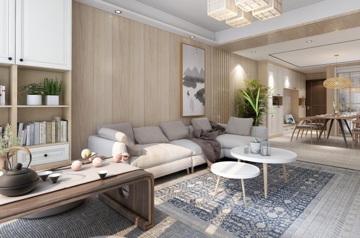 客厅的阳台扩到室内,做了一个榻榻米,业主可以晒太阳,喝喝茶