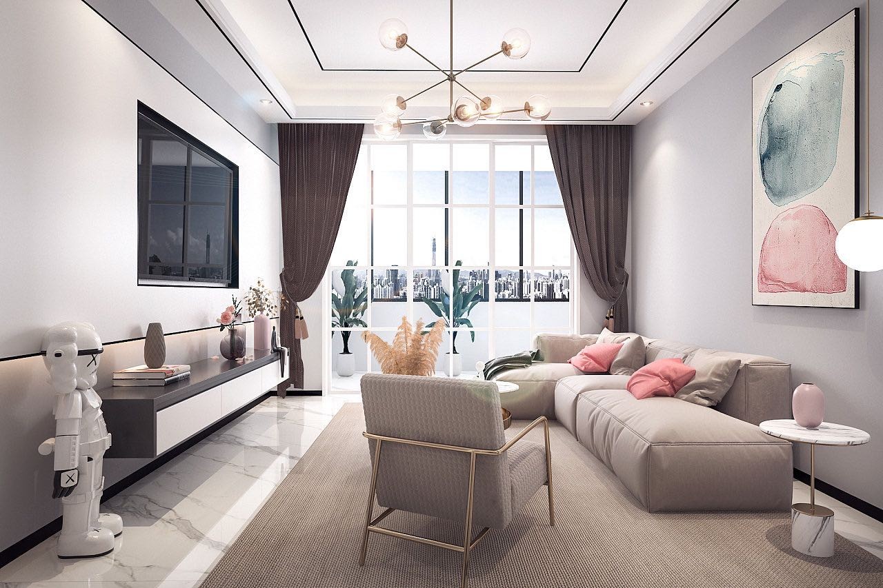 客厅的沙发需用的灰色系的,但是比较的素雅,搭配点粉色,比较的活泼