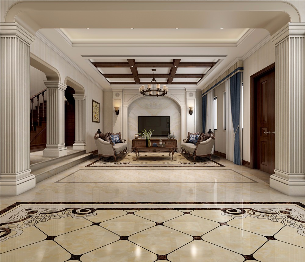 客厅宽敞恢弘,富有历史气息,不显过分华丽隆重,但依旧流淌出典雅的贵气。