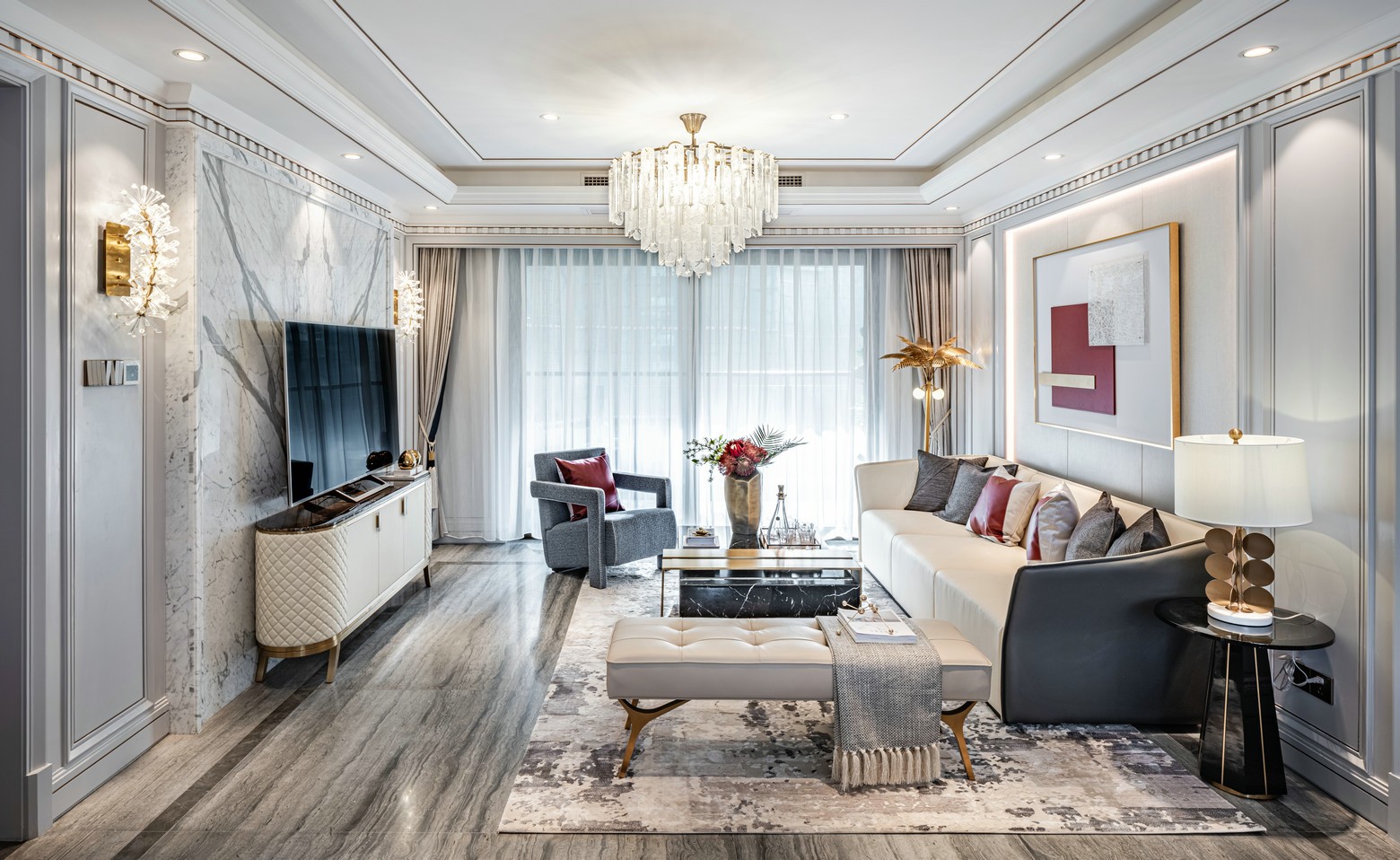 此样板房作为承载生活与艺术的发生器,被设定为都市新贵阶层的五口之家。男主人40岁,无论工作还是生活都精准把控品质与细节,对于时尚与艺术亦有极高的审美眼光;女主人35岁,有着超前的时尚理念和独到的潮流认知,钟爱***品的精致尊贵和钻石闪耀的奢华感。