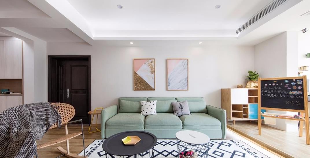 客厅,以纯白为底色搭配浅色家居,加以***的采光性,营造清新又舒适的空间氛围。浅绿色布艺沙发为空间整体增添生气,衬以柔和的色彩作为点缀,镂空茶几让空间感得以保留,简约而有质感。