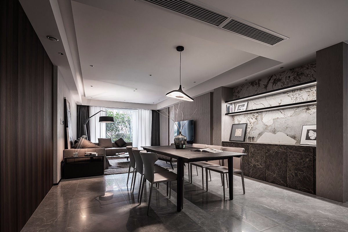 注重功能和空间的协调性,进入室内,空间以深色和木色为主旨,在光线的引入下, 没有多余繁琐的物品,充满了阳光和呼吸的感觉。