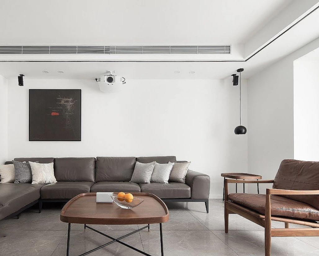 客厅被定义为休息娱乐的场所,在传统的沙发+茶几+电视布局基础上增加了投影功能。