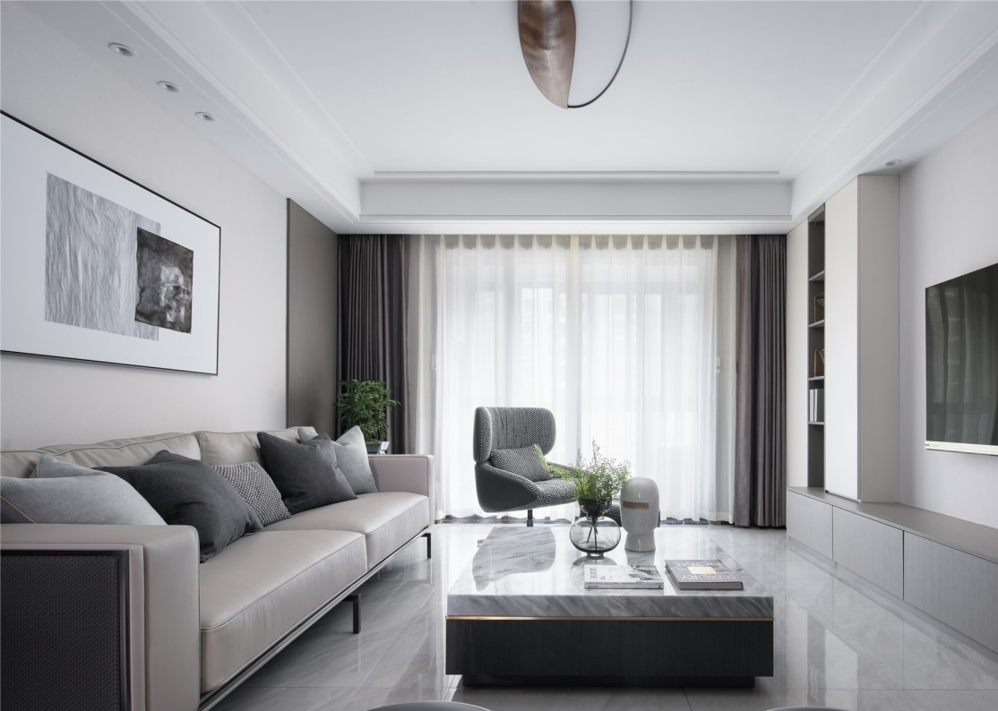 现代的简约干练,中式的典雅,融合在空间的形态、细节里,优游自如。