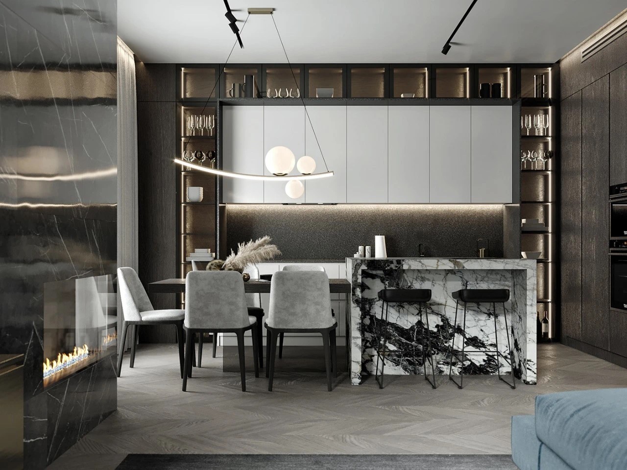 卫生间的一面墙采用通明玻璃,免除了卫生间的憋闷感