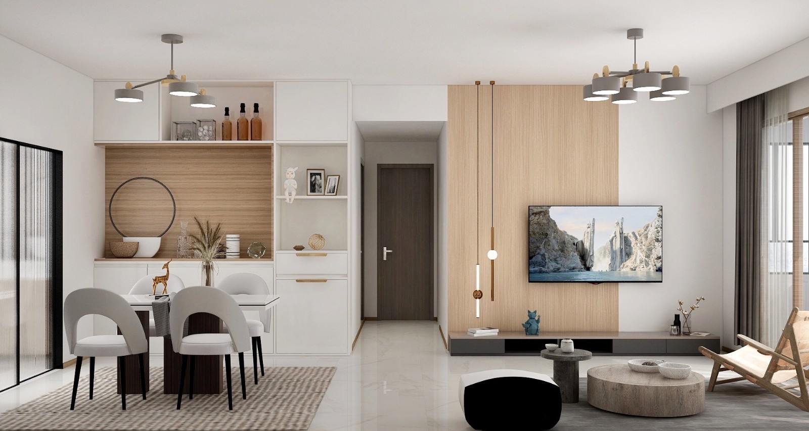 客厅衔接餐厅,浓浓的居家气息,就餐分外有仪式感。