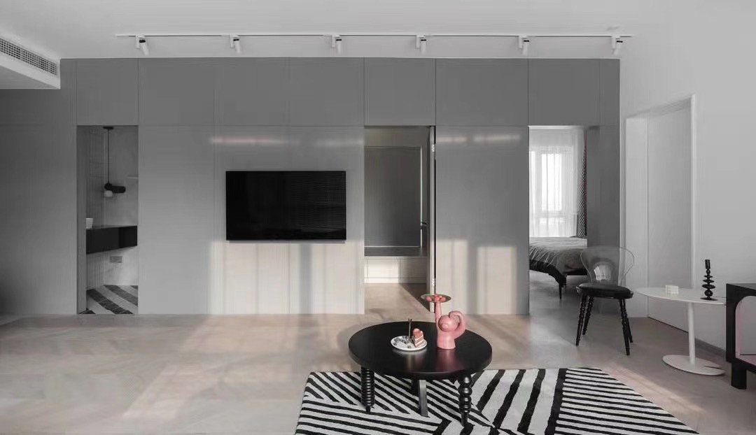房间隐形门和电视背景墙融为整体