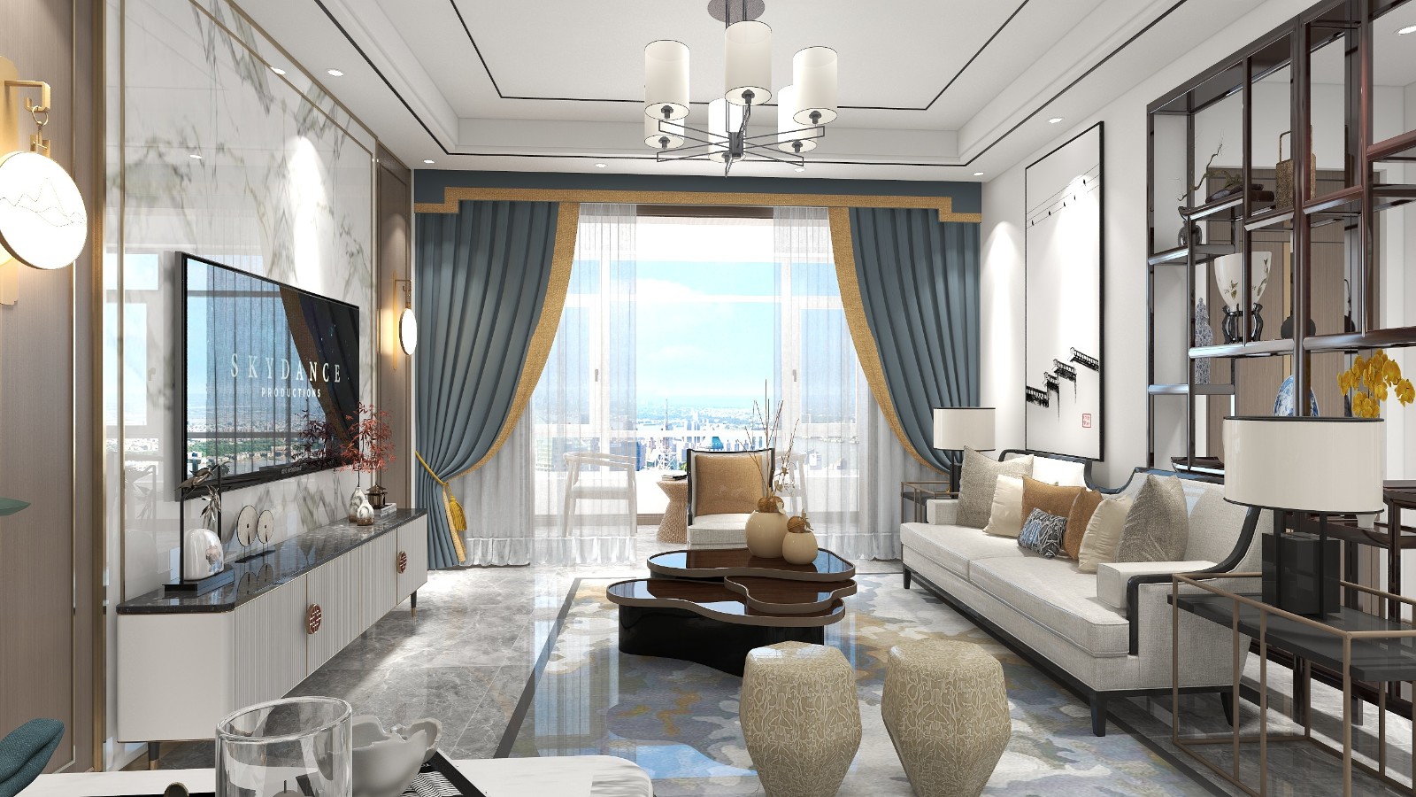 新中式元素结合业主喜欢的家具风格整体存在层次感