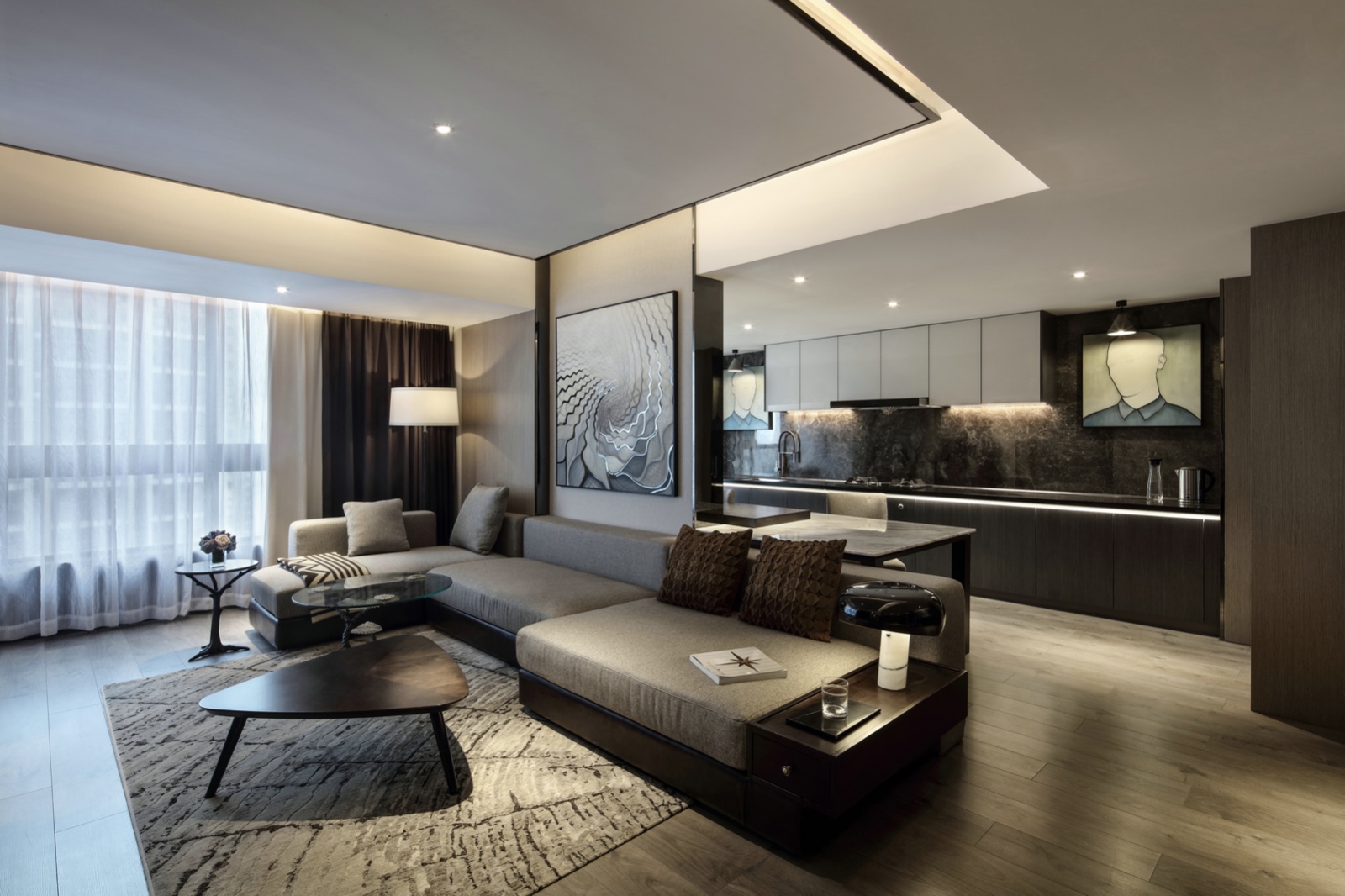 该项目是以软硬结合的墙体融入整体空间格局,利用比例、光线和材质的变化激发空间潜力,创造出舒适而优雅的空间氛围。设计师对每一个空间都倾注了同样的心血,以细致的图纸和精巧的细部打造了一个充满惊喜和愉悦的居住空间。