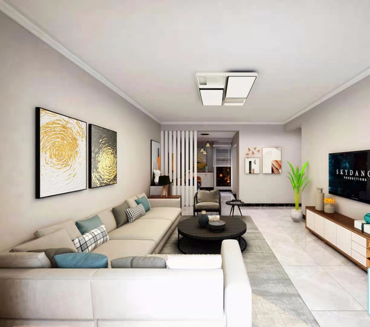 客厅以餐厅之间,选用屏风隔断作为区域划分
