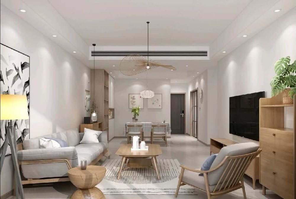 房屋整体是以米白色和原木家具的搭配,整体透露出小清新的感觉,简洁明亮