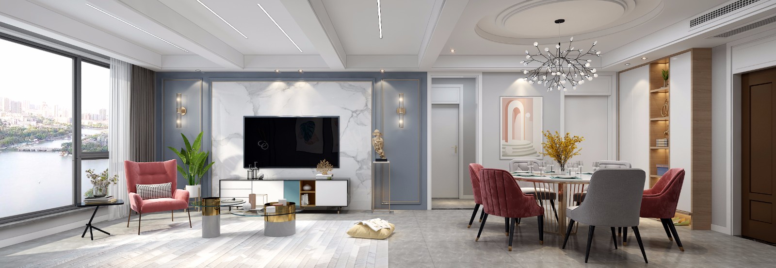 电视背景墙彰显主人大气沉稳的性格,与餐厅背景搭配协调
