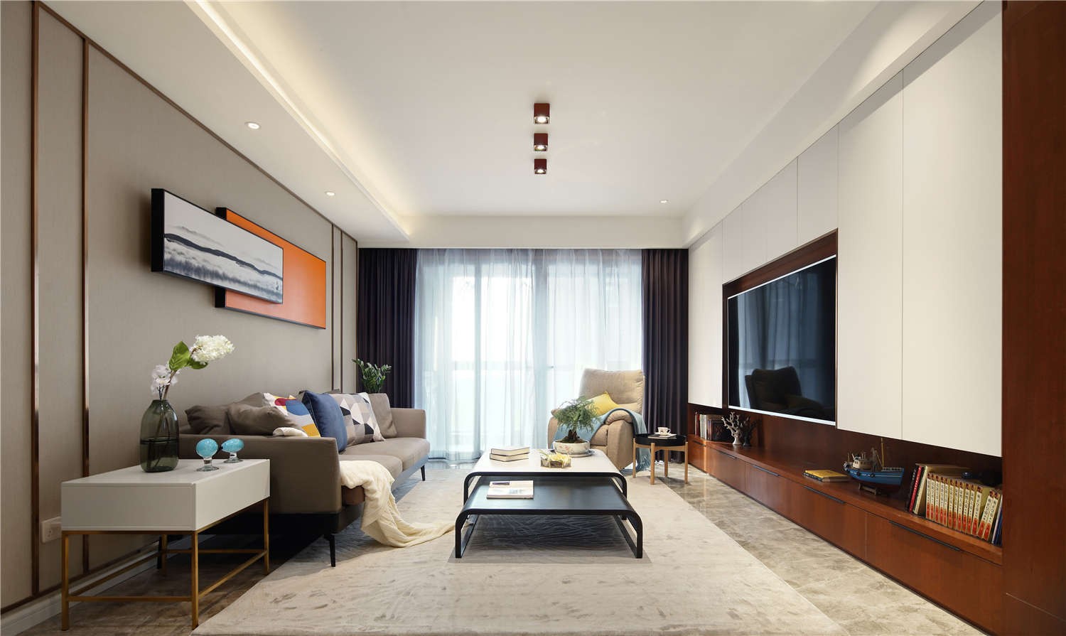 客厅是全家活动的主要场所,要有多样化的功能,来应对动态的生活及心情。简洁的玫瑰金不锈钢线条,勾勒出背景墙的轮廓,木白色相间拼色的功能柜,沉稳而不呆板,端庄而不严肃。
