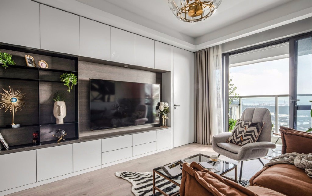 客厅布局以简单清爽为主,太繁琐反而显露弊端