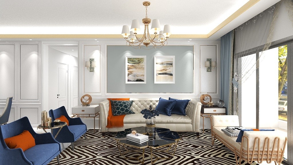 本案色调以白色+金色为主调,辅以低饱和度的香槟金和蓝色做点缀,使得空间更富有质感,体现了奢华空间的恬静典雅。为了追求真实而不失精致的生活,将浪漫风情和当代生活的需求相结合,力求细节处将独到的高贵优雅诠释得淋漓尽致。