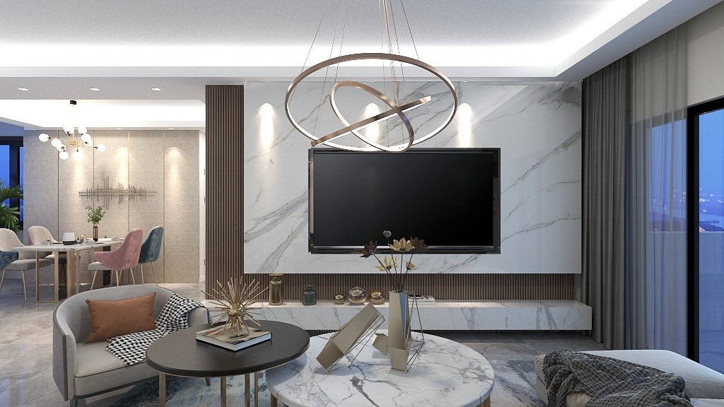 沉稳的配色以及挂件作为沙发背景,与半通透的长虹玻璃,在光影荡漾下出跳跃灵动的视觉变化,营造出诗意般的奇妙氛围。