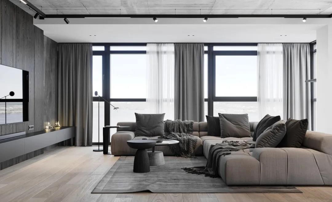 空间是光影的容器,大面积的落地窗,自然光穿过灰白色的纱帘,给起居室添上一笔沉稳和宁静。室内着重于纹理,走在时尚的前端,融入醇熟的设计理念,连接关于生活的点滴,打造纯粹且舒适的设计感之家。
