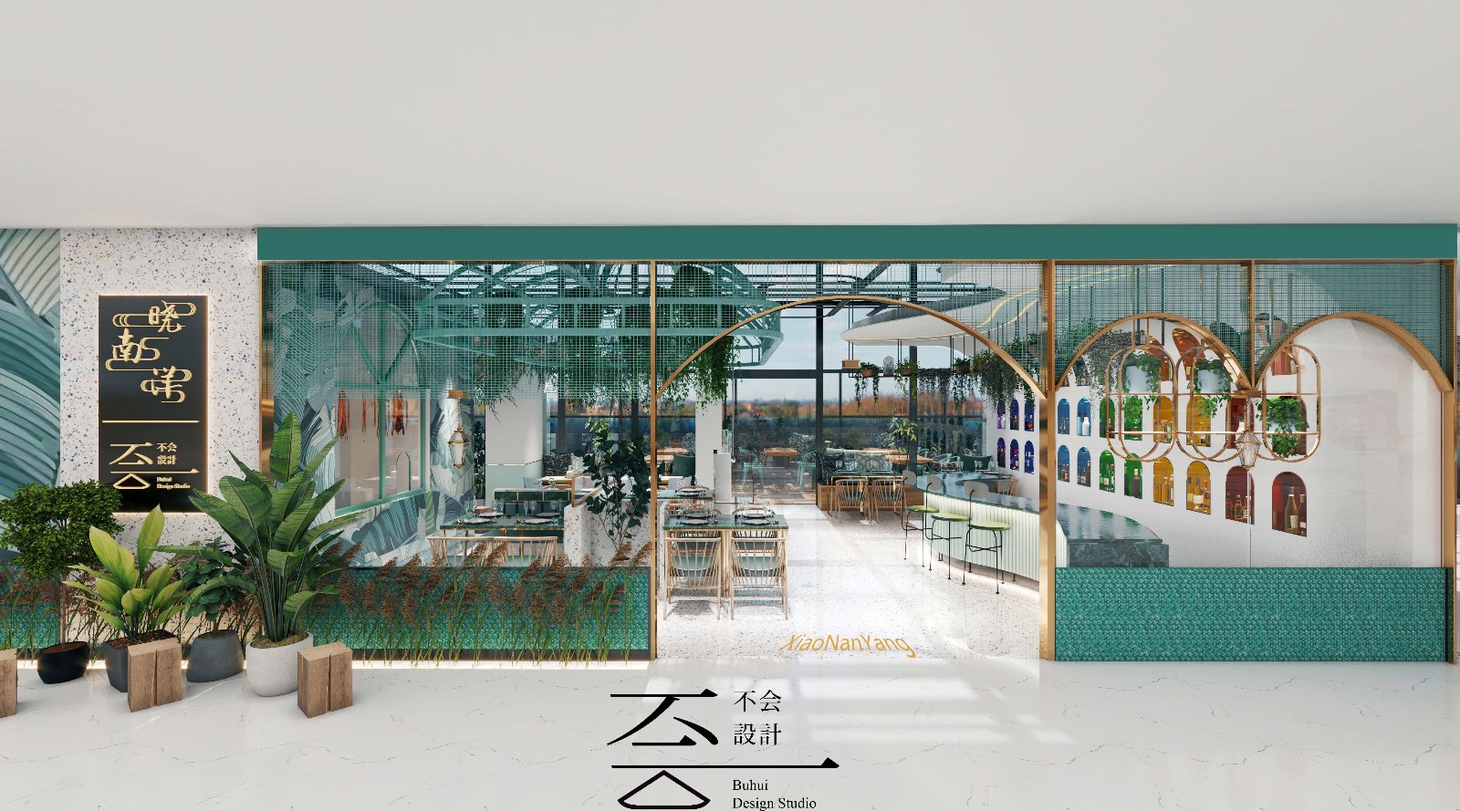 新加坡风格的餐厅,水磨石加香槟金的搭配