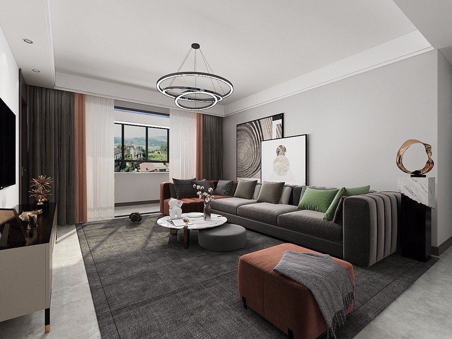 客厅:客厅整体设计元素基调淡雅,低调的设计来打造现代休闲式的舒适感,局部采用珊瑚金色和抹茶绿进行点缀,使空间素雅而不失单调。影视墙轻盈简约的线条同样贯穿点明主题,极简但不失生活化的配饰点缀,诠释了少即是多的审美喜好,让释放成最简洁利落的房间,带给人最强烈的记忆。