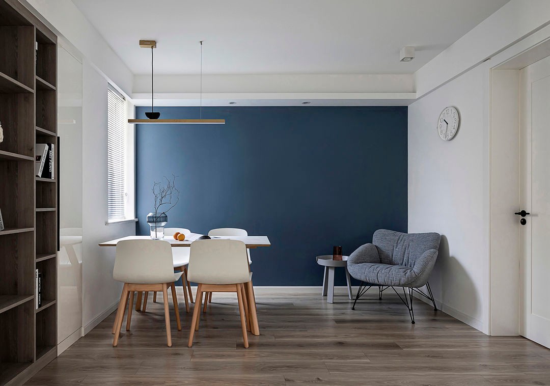 主卧延续了客厅的蓝,皆在让风格统一,设计既要精益求精到每一处细节,又能让每一个细节都围绕统一的主题展开,如同散文文笔间自在描述,但始终围绕主题,让人沉醉于美好情绪中。纯净的空间,让每天入睡前有一个归零的心态,慢慢的进入美好梦境。