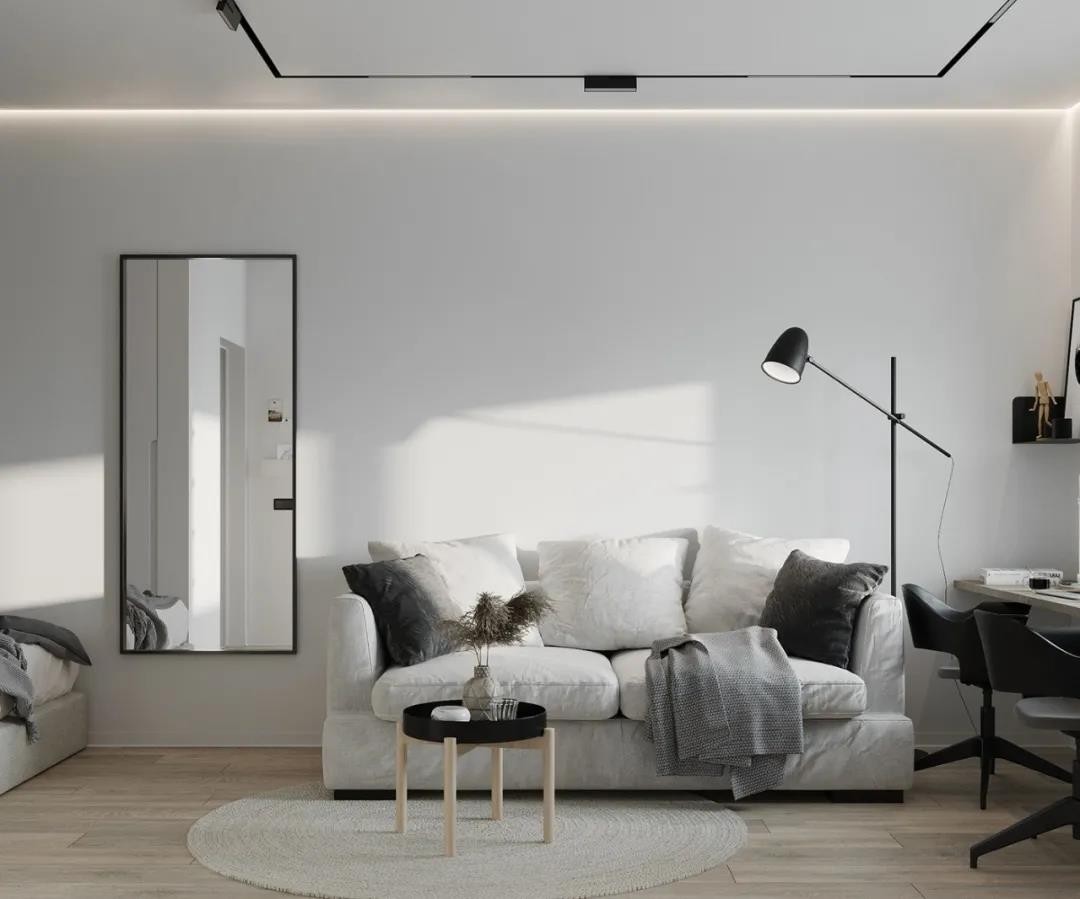 面积50㎡的小户型设计,该项目的是在视觉上扩大这间一居室公寓,使一对年轻夫妇住得既实用又舒适。