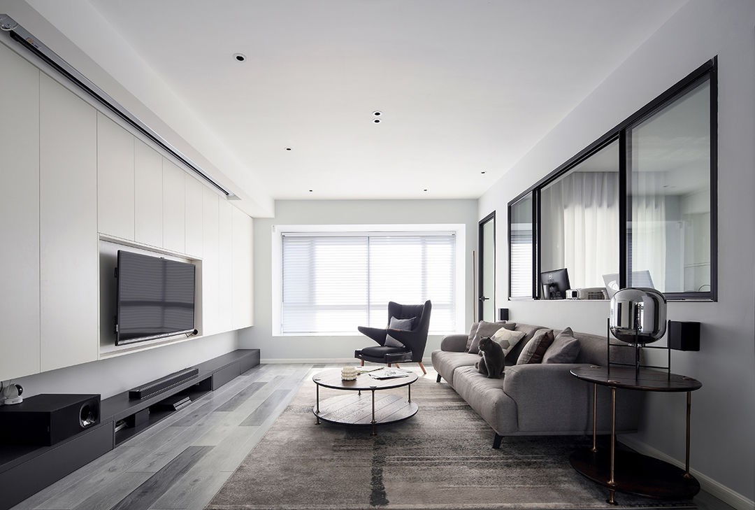 黑白灰为主的空间, 没有过多花俏的装饰, 只有点线面的结合。