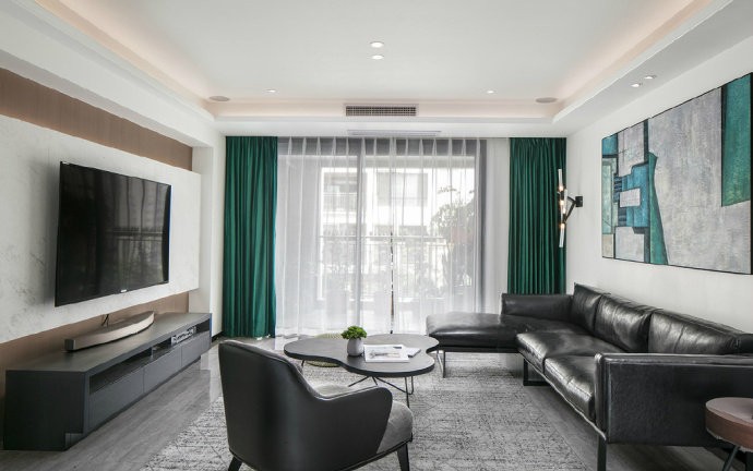 干净利落又不缺乏温馨感 客厅黑色沙发比较独特