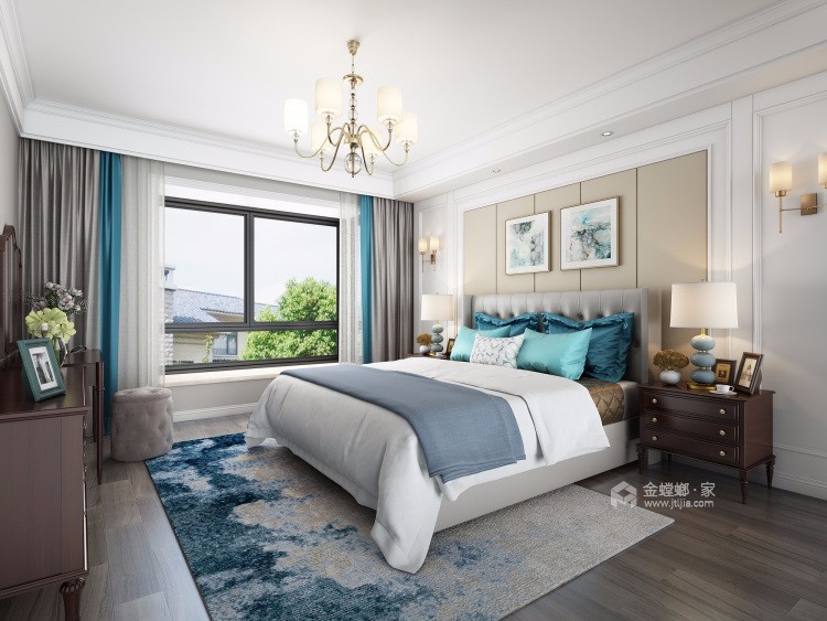 该户型是三室两厅,主人是一对新婚夫妇,喜欢温馨浪漫的小美式风格