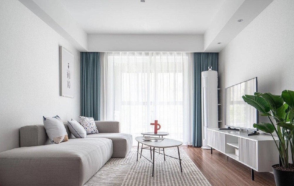 一层薄纱窗帘,平时即不影响采光与可以保护隐私。水蓝色的窗帘,成为白色空间的一抹养眼的点缀,清新宜人。