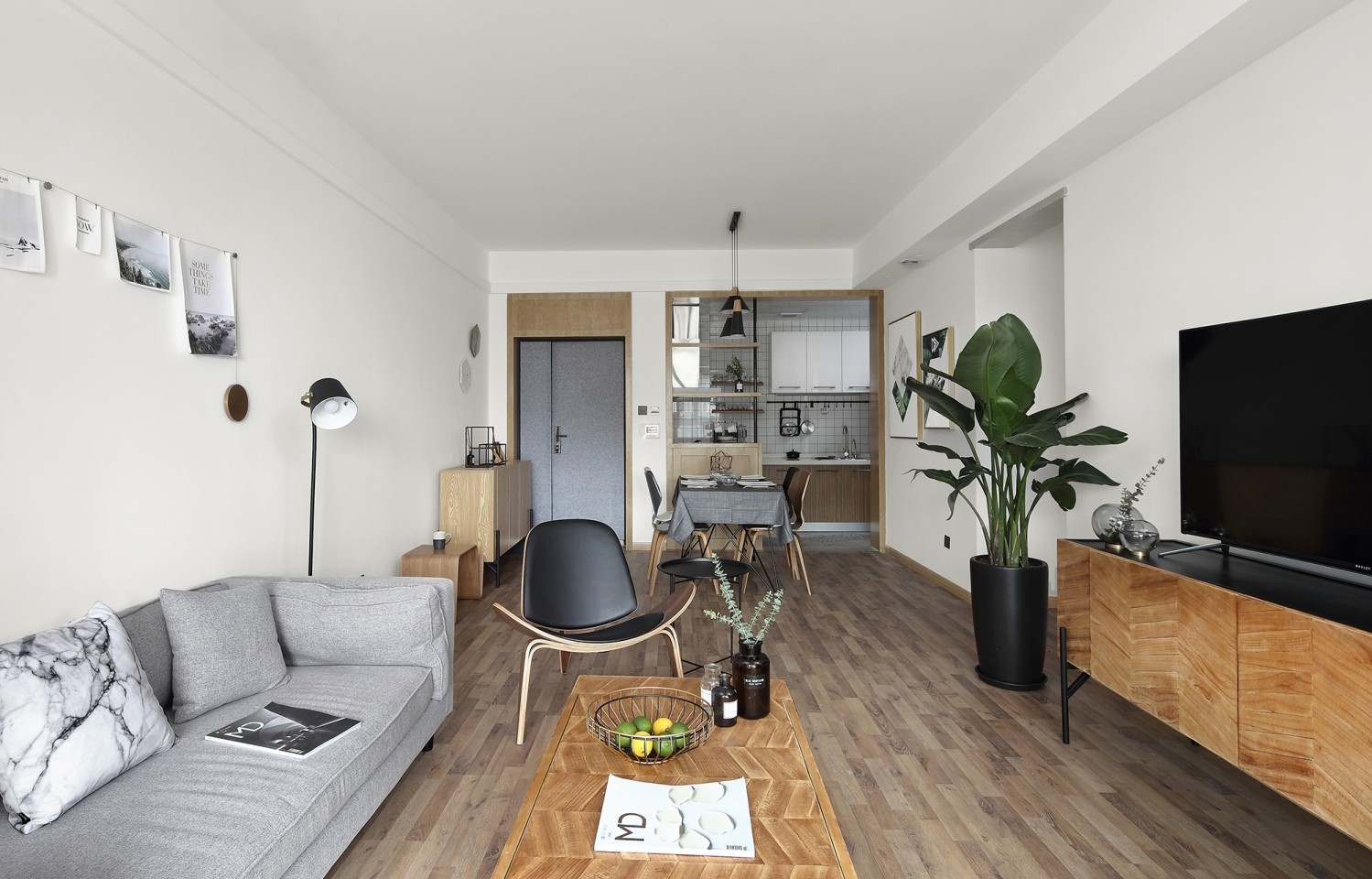 小户型的客厅也是整个设计中最难设计的地方。小小不到10平方的空间,要优雅的融入沙发、电视、餐桌等,这对任何一个设计师而言都是一个巨大的挑战。