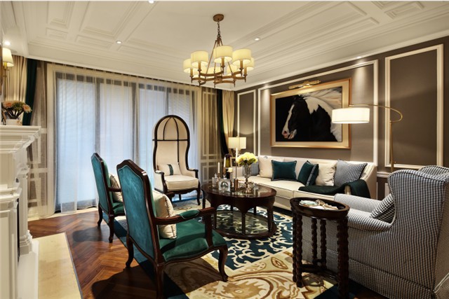 本案以轻美式为格调,巧妙运用优雅简洁的白色石膏造型,加以点缀金色线条,让空间挥发着自由与贵气,风景如画,又不失实用。精致细腻的装饰设计,让家里洋溢着温馨舒适的气息,在温馨的家里,创造一种宁静与和谐,简洁而精致的,简单而快乐的生活。
