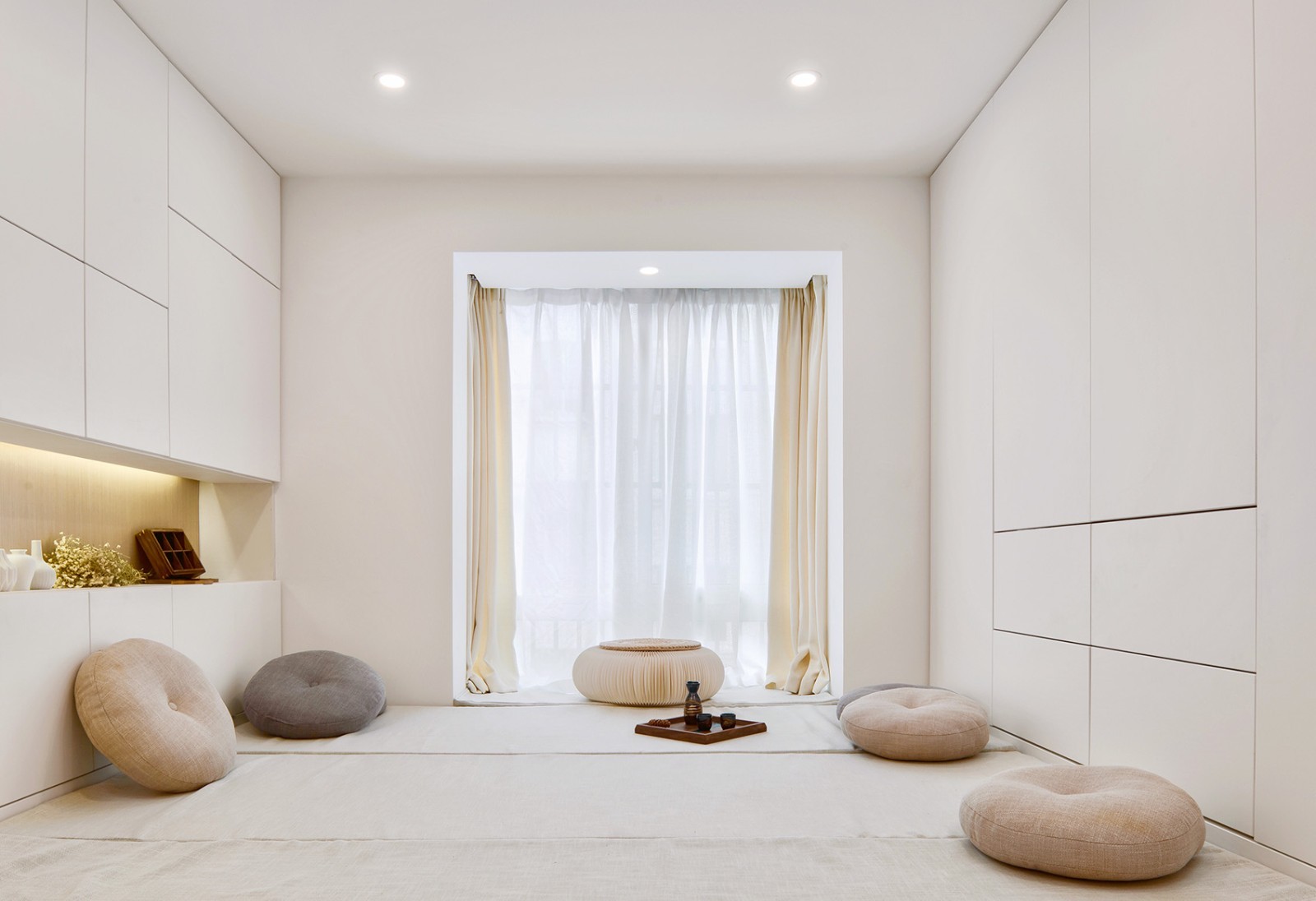 北欧原木风的客厅,随处可见的棉麻,原木材质,无主灯设计,
