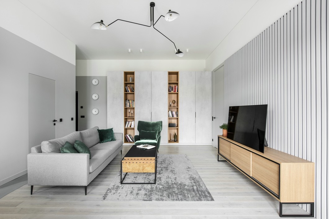 通过洁净的白色与自然木色相结合,整体空间温润轻盈;布艺的蓝色沙发与同色系的海浪油画,不论从哪个角度看,都有“目光所及都是温柔”的感受;绿油油的植物,以生命的方式存在还是绘制在布艺上,都散发着生机勃勃的气息,让人舒适轻松。