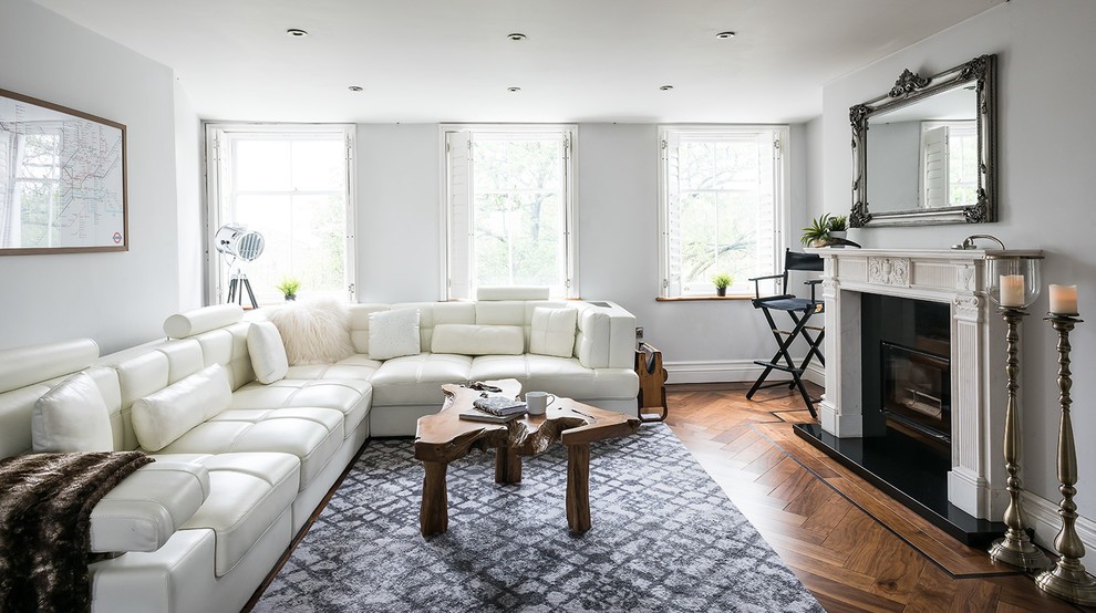 意大利灰的天然大理石石材壁炉、白色护墙板、金色水晶壁灯、黑色皮质沙发、灰系的地毯、白色大理石的茶几,每一份不同色彩与材质的碰撞与融合,都为空间注入一份美式的质感与魅力。