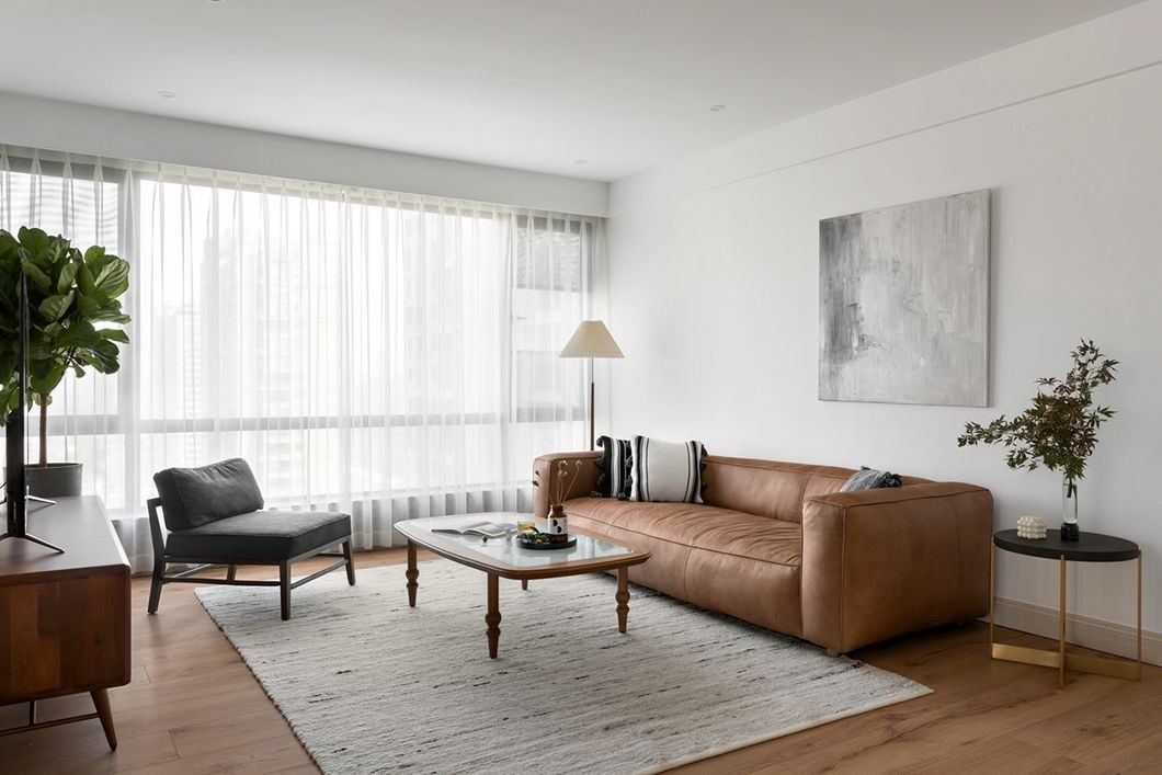 在简洁自然的家居陈设中,大面积留白使得空间感无限蔓延。漫步其中,你能感受到木质的温润,涂料的光滑,皮革的褶皱,织物的柔软触感。