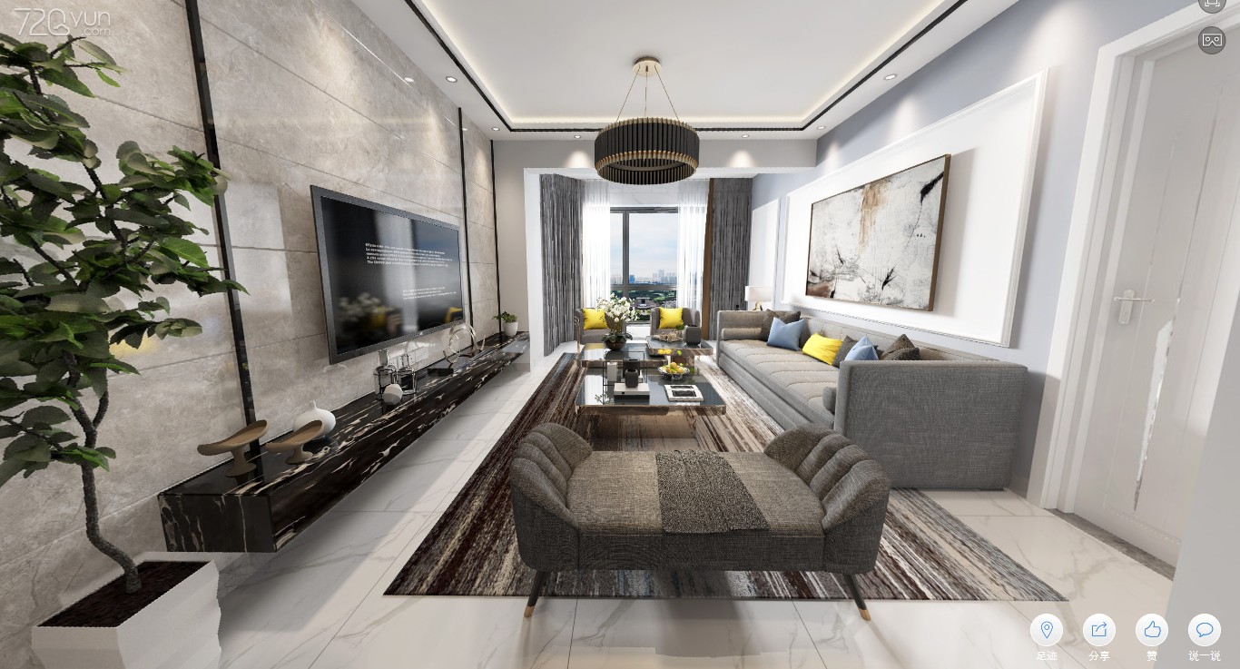 本案例为现代风格,整体以黑白灰为主。 格局上:原户型为三房一卫,阳台多且大,现改造成三房两卫,阳台大部分利用到卧室客厅增加利用率。 造型上:地面用仿爵士白抛釉砖,增加空间***感;沙发