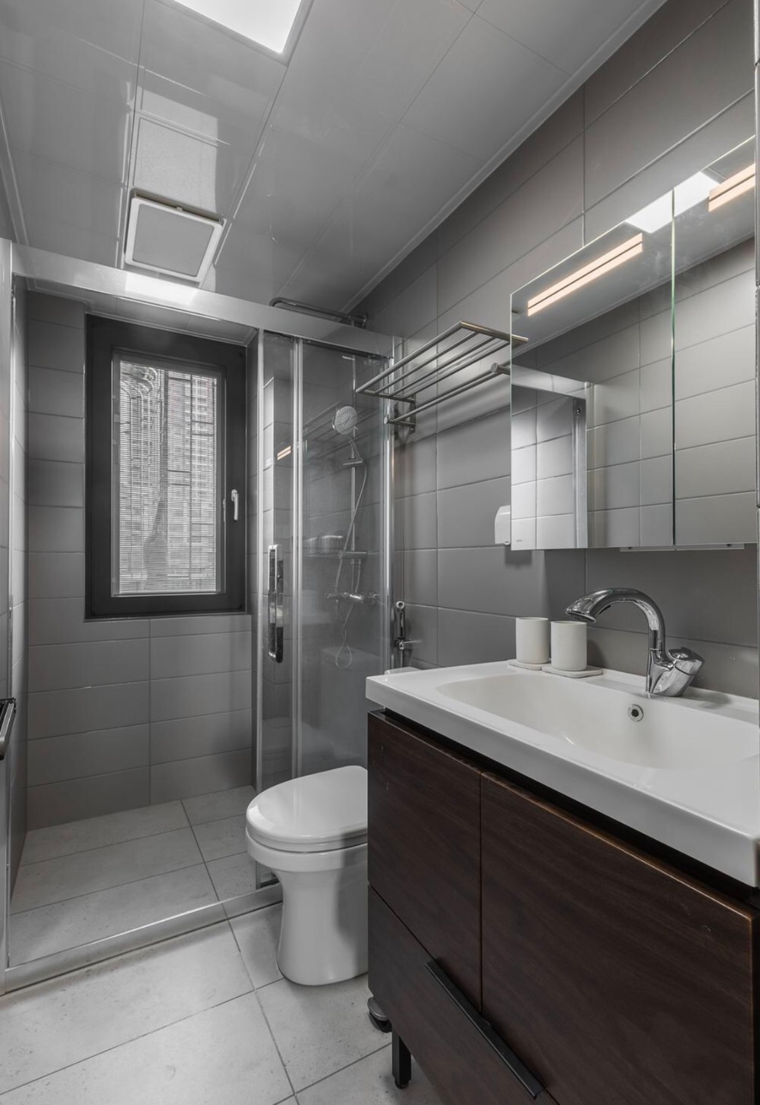 :空间虽不大,但也不局促。卫生间的马桶尺寸选购,浴室柜的选择上,每个细节的尺寸把控,都是经过一再核算,深思熟虑后再下手。