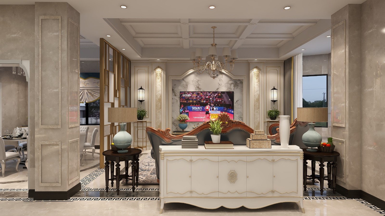 欧式自建房,十字格吊顶,复古欧式+轻奢隔断,背景墙大理石+罗马柱装饰,复古又不显得过时。