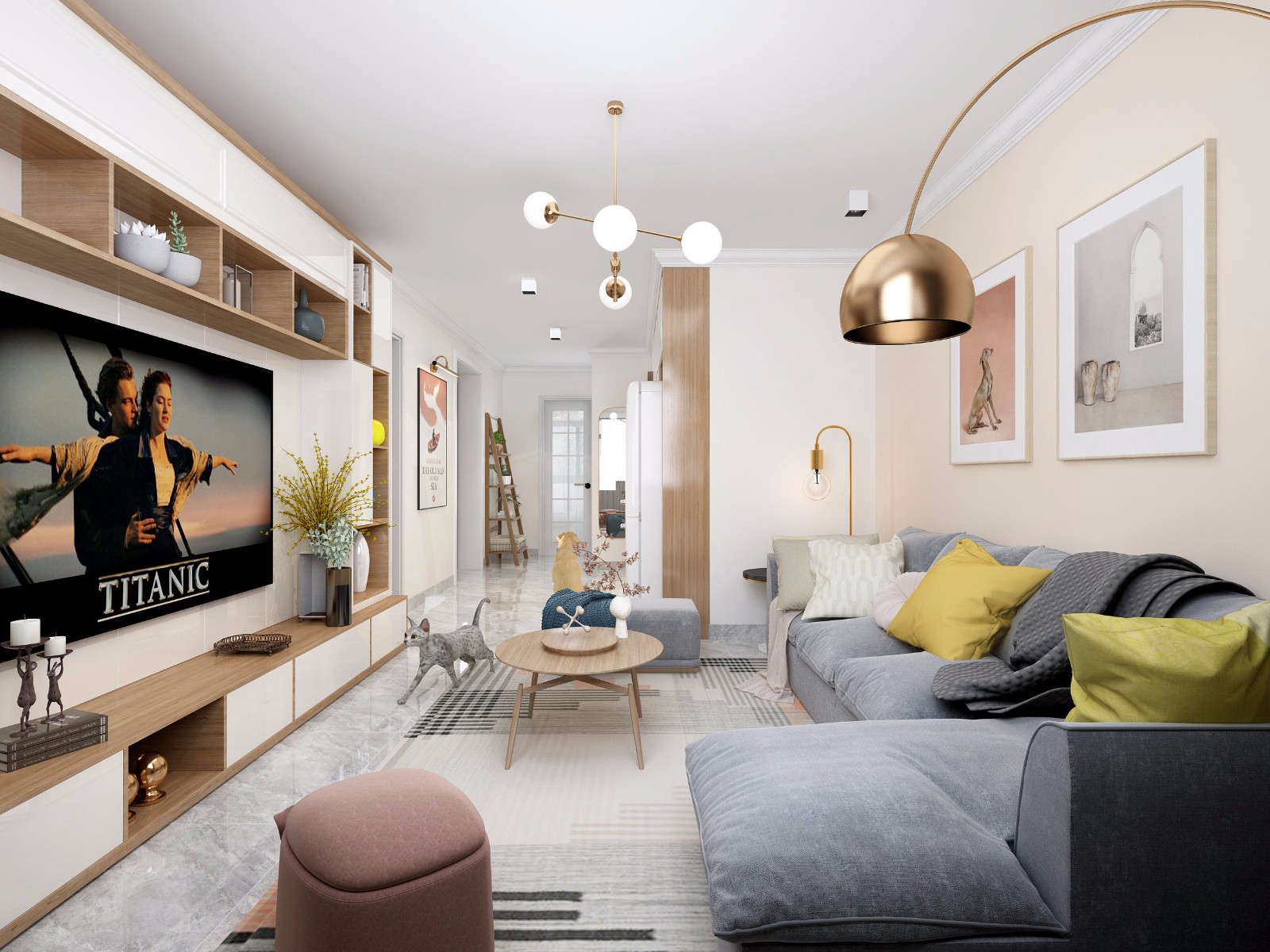 女主人有收藏的习惯,所以设计了多功能的电视柜,增加储物空间
